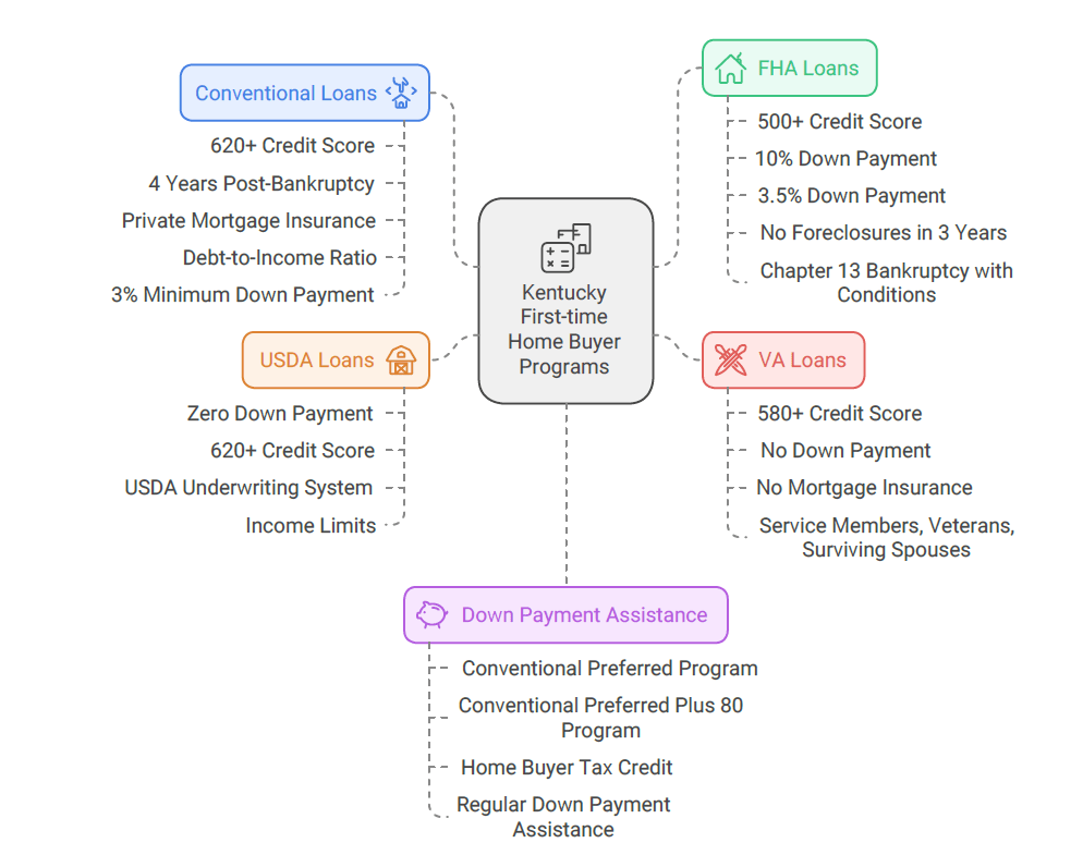 Several government-backed and alternative loan programs are designed specifically for buyers facing credit challenges. Let’s dive into the top 5 options available in Kentucky today.